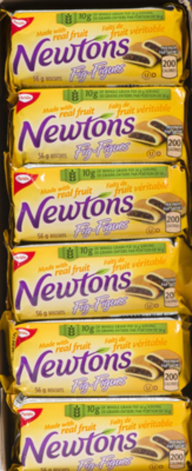 Enjoy the classic taste of Christie Fig Newtons, featuring a delicious fig filling encased in a soft, chewy cookie. Each 56g pack contains two cookies, making them a convenient and satisfying snack for any time of day.
