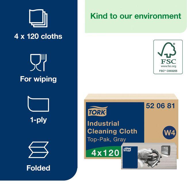 Tork Gray W4 Industrial Cleaning Cloth, 14 x 16.3 in -- 480 per case